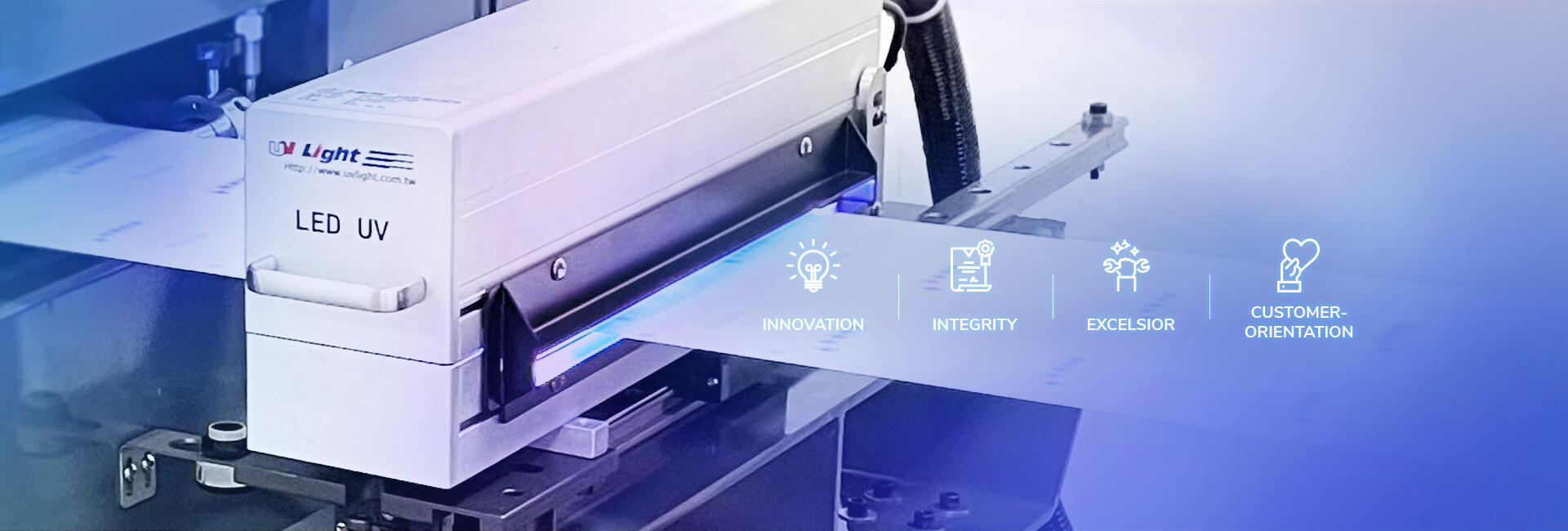 UV Light is the leading manufacturer of high-performance UV curing system in Asia. With highly-efficient LED UV Systems, features like no extra heat, higher intensity, energy-saving, and instant On/Off activation, help printers to lower the cost and have more robust systems to meet their needs.